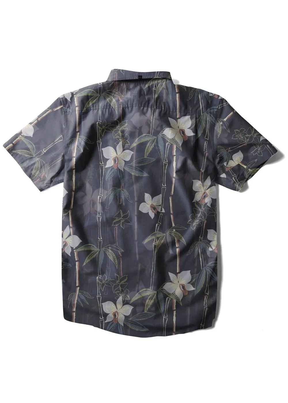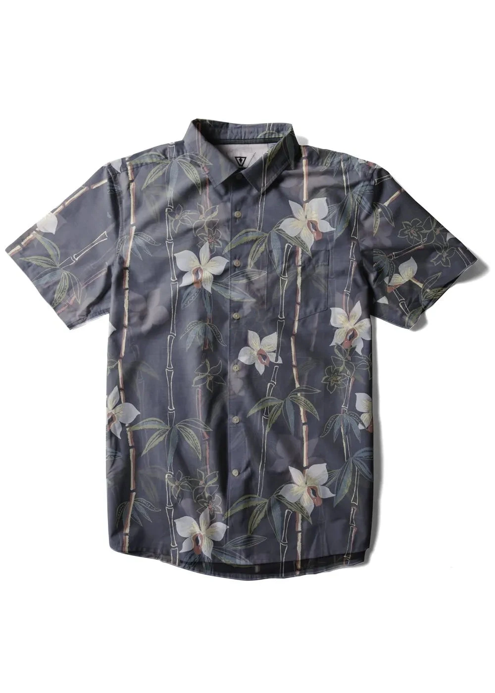 All of the magic can be found in the Canopy – premium eco shirt – fabricated in sustainably sourced recycled poly Repreve, cotton, and spandex for a soft touch and lightweight feel. Style features include light-reaching floral design, a fold over center front placket, front chest pocket and contrast chambray lining at inside back yoke. Garment washed with softener + enzyme.