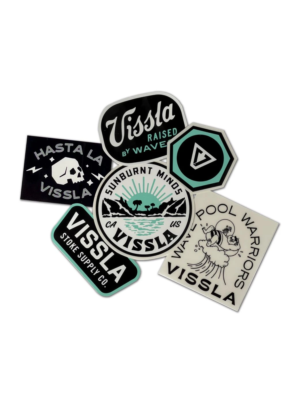 Vissla sticker pack. Assortment of sticker art and sizes. Sticker pack includes 6 stickers. Stickers may vary.